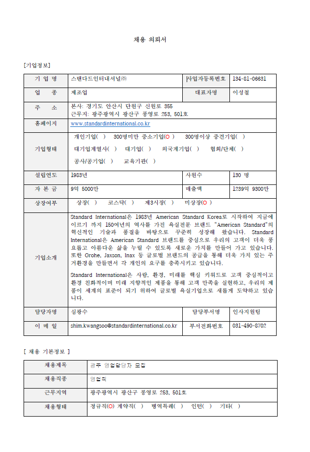 - 파일 제목은 '스탠다드인터내셔널(주)_지원직무_이름' (예>스탠다드인터내셔널(주)_영업_홍길동) 형태로 제출해주시기 바랍니다