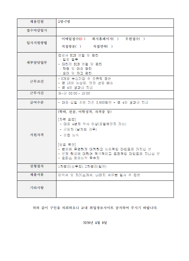 - 문의사항은 추천채용 담당자(063-850-7592)에게 연락 바랍니다