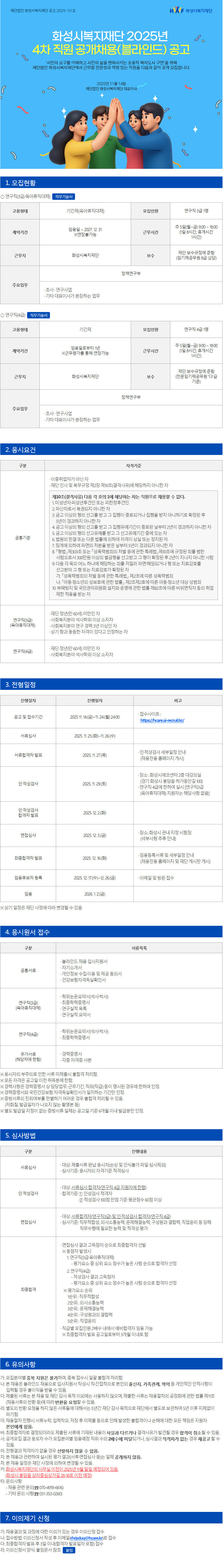 (재)화성시복지재단 2025년 4차 직원 공개채용(블라인드) 공고