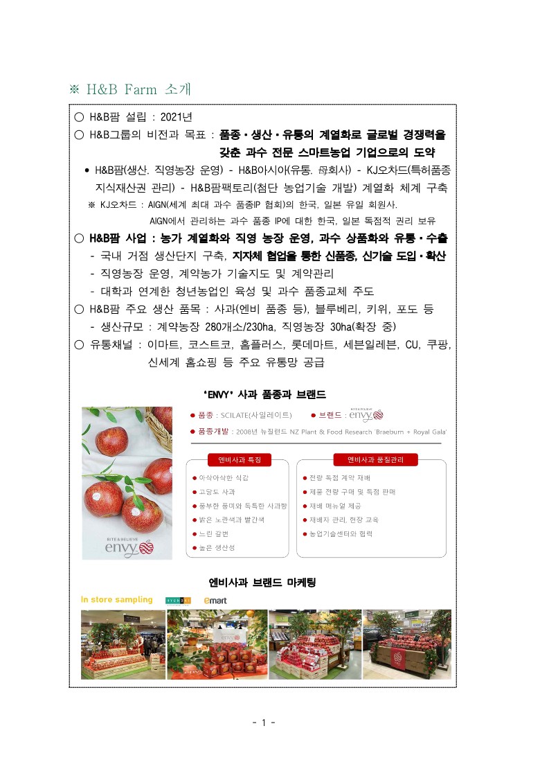 에이치엔비팜 채용 공고(사업기획 및 운영/과수농장 생산관리)