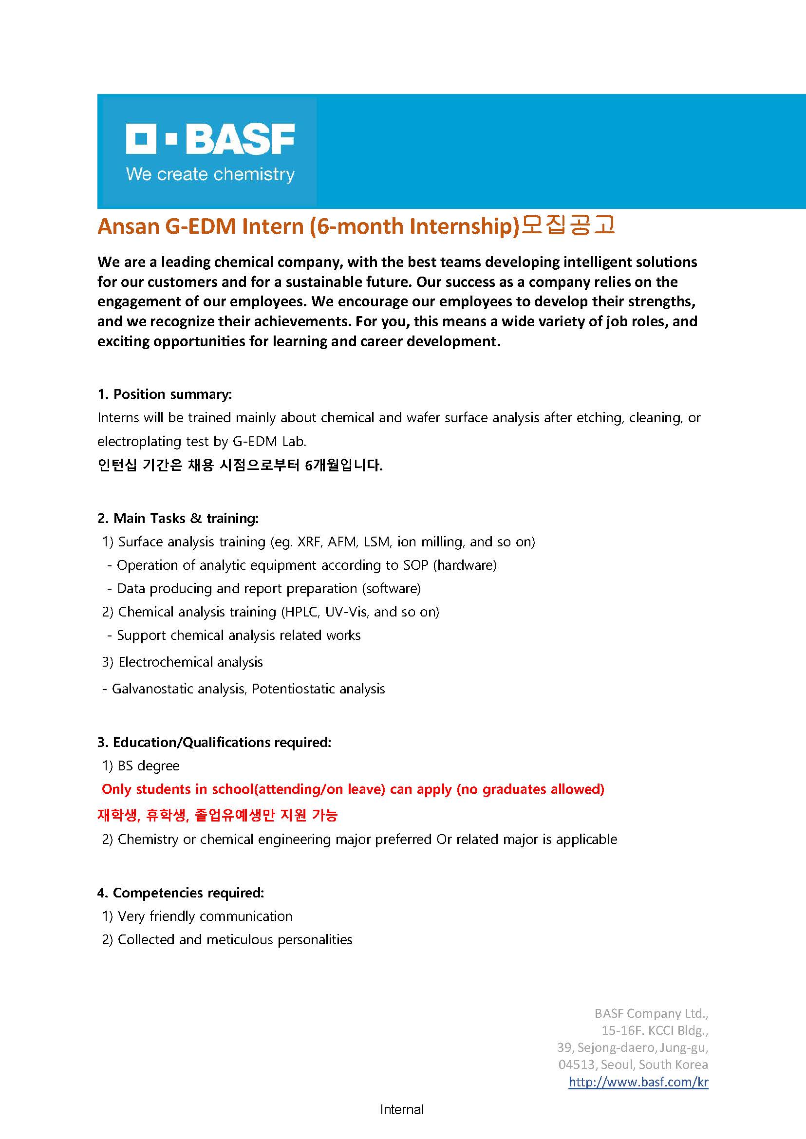 [한국바스프] 안산 연구소 G-EDM Intern 모집