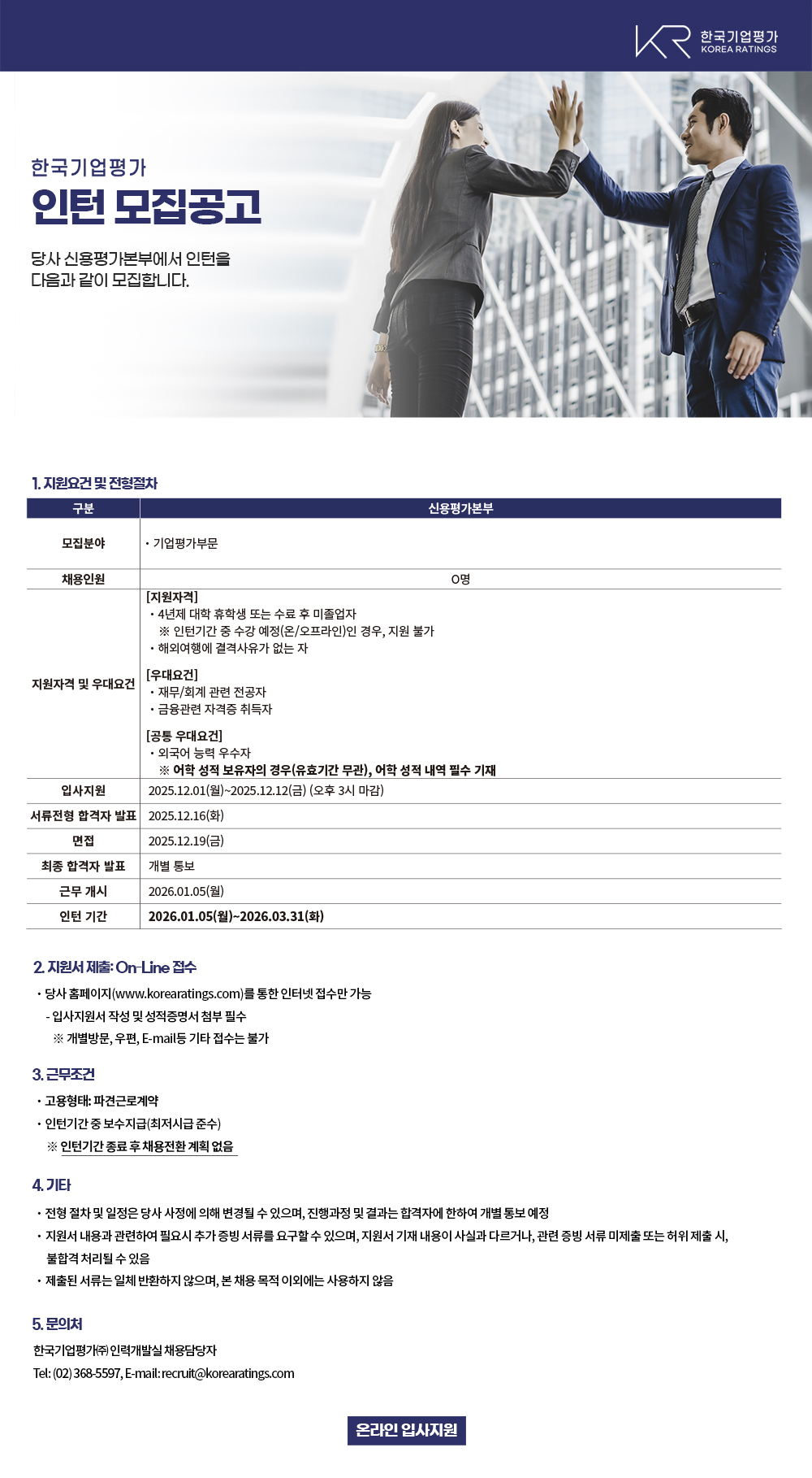 한국기업평가 기업평가부문 인턴 모집