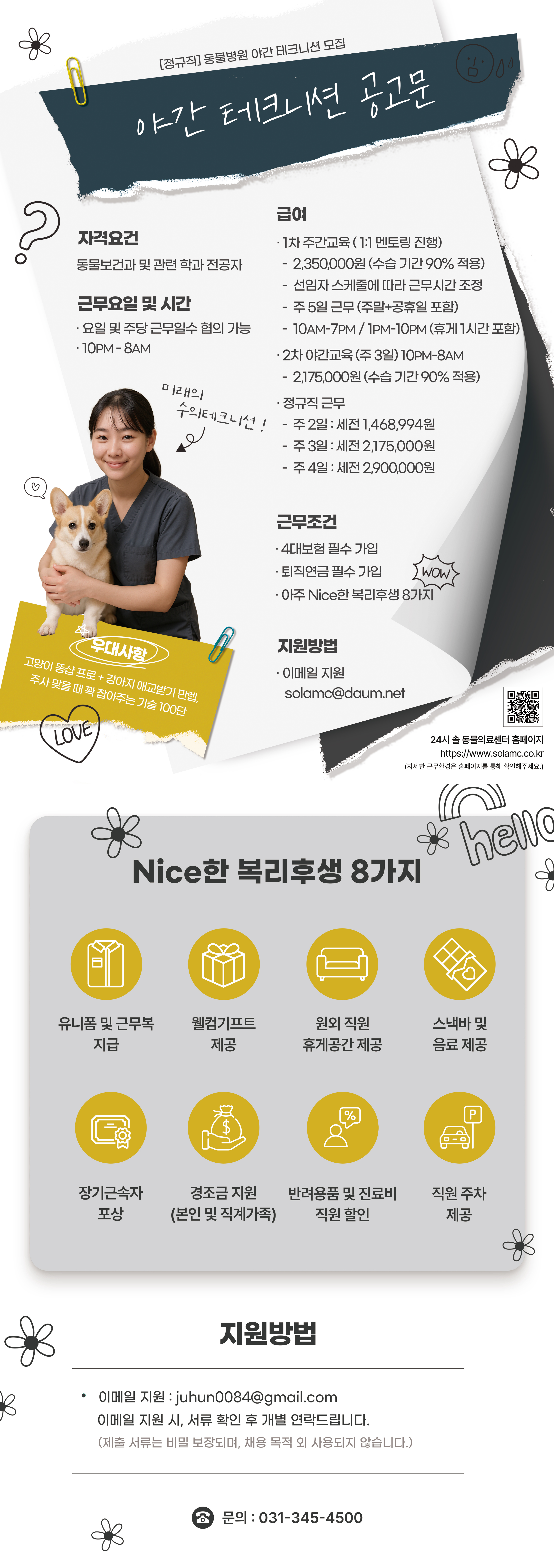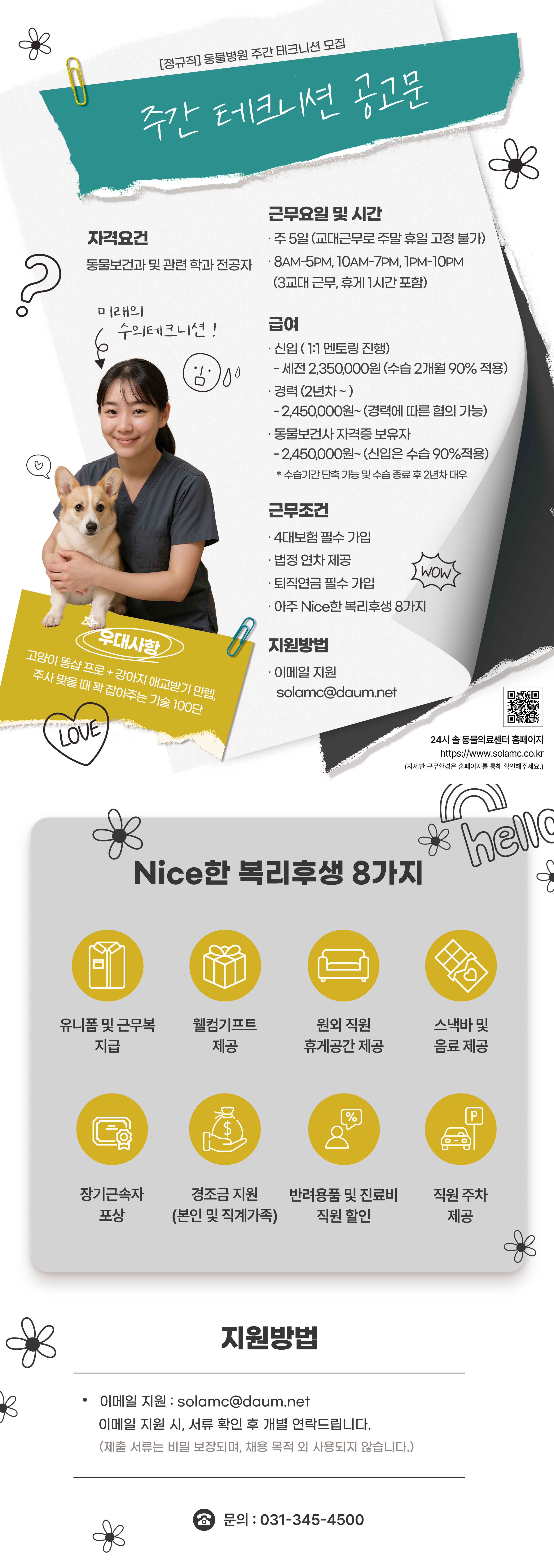 솔 동물의료센터 테크니션 공고(주간, 야간)