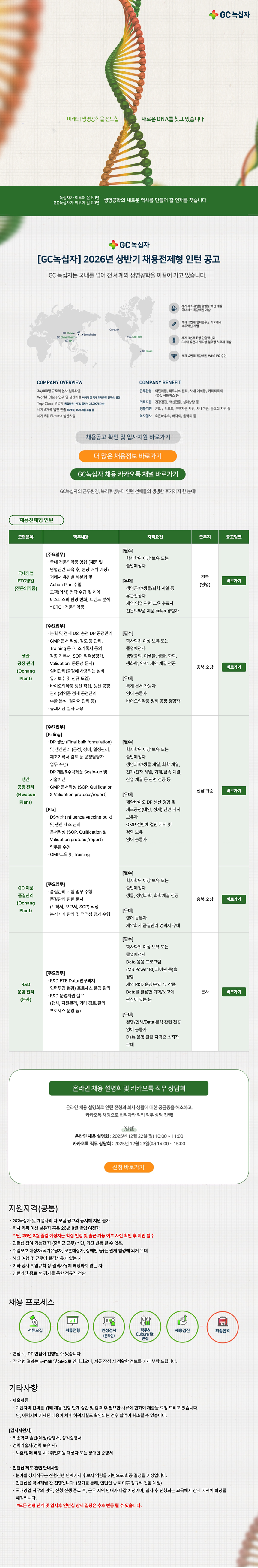 [GC녹십자]2026년 상반기 채용전제형 인턴 공고