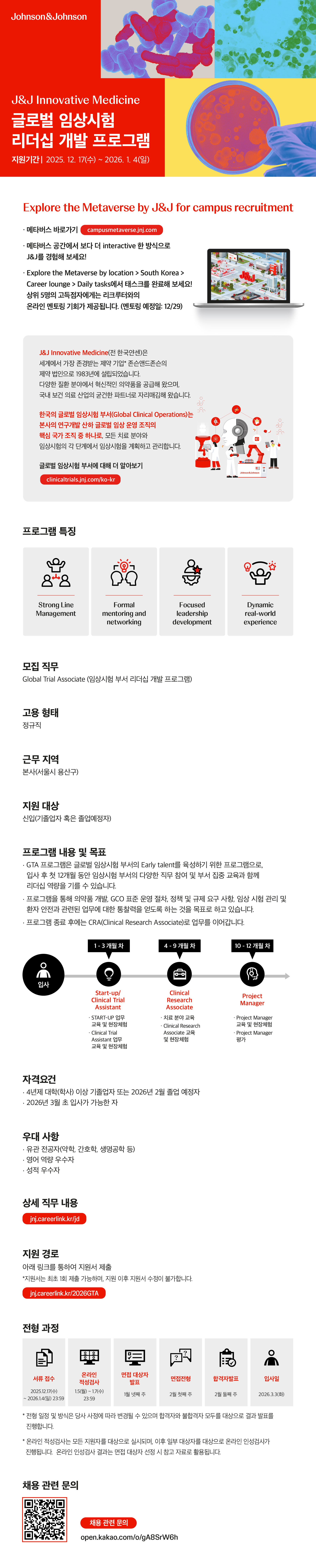 [Johnson&Johnson] 글로벌 임상시험 리더십 개발 프로그램 모집