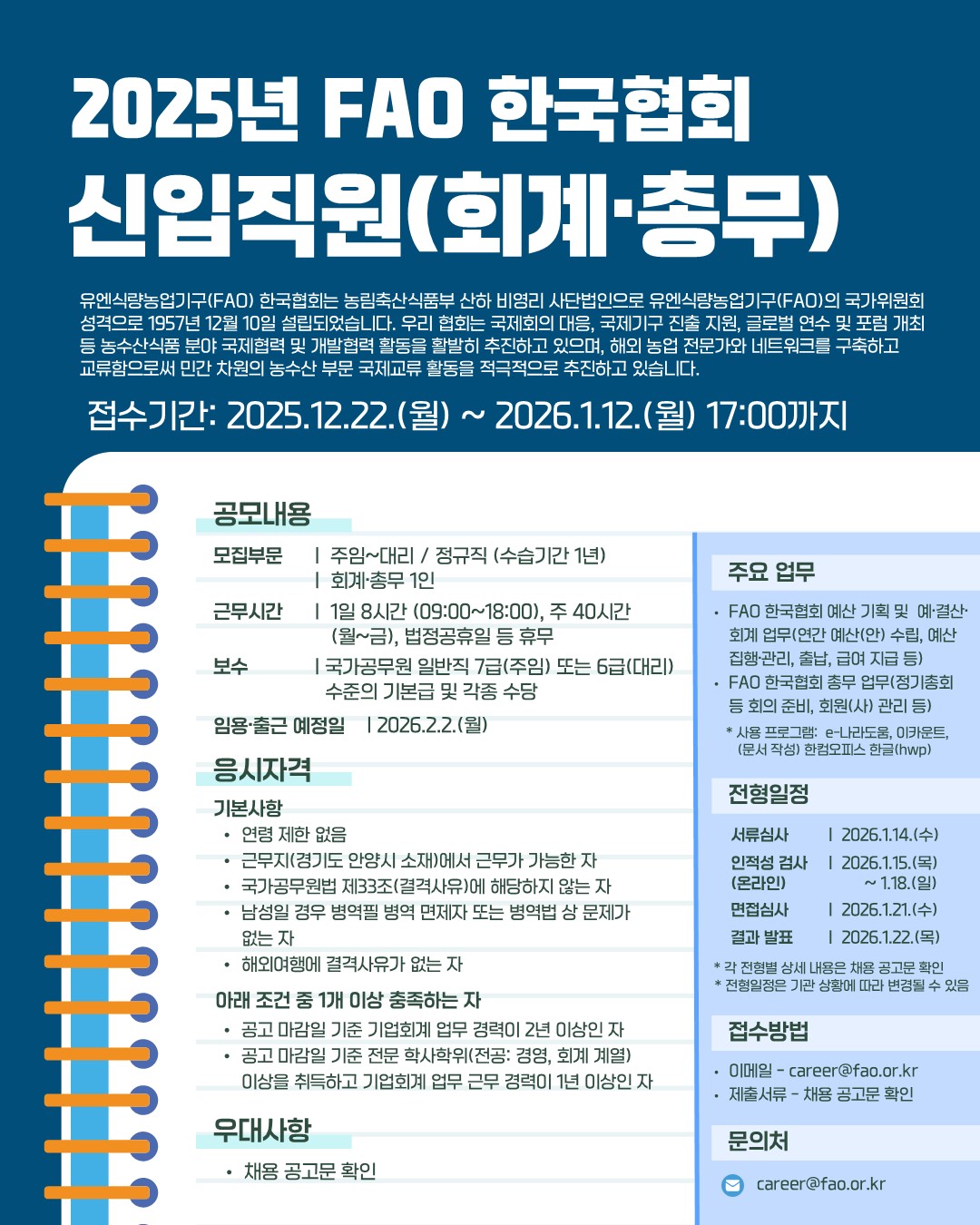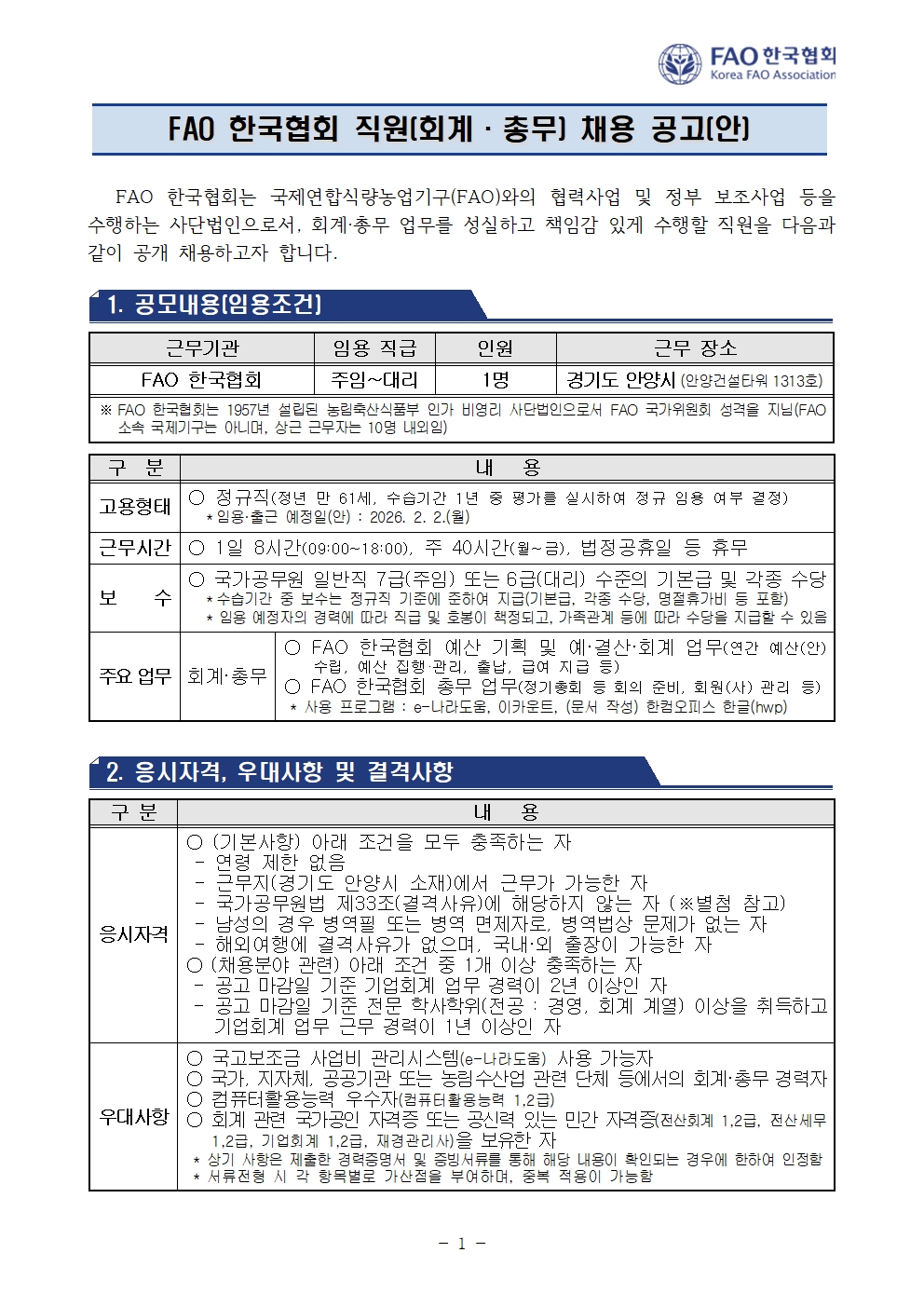 붙임 1. 2025 FAO 한국협회 채용(회계총무) 공고_배포용.hwp