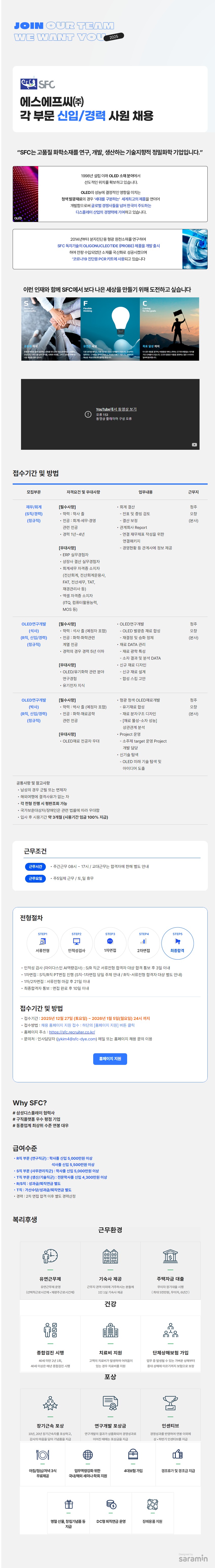 에스에프씨 26년 1월 각 부문 신입/경력 사원 채용