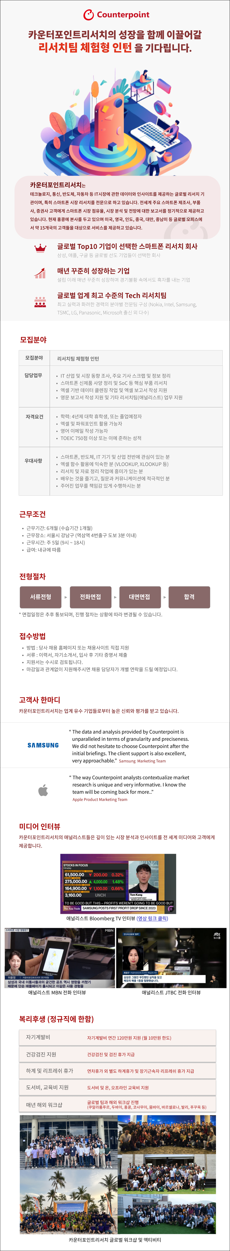 카운터포인트리서치 리서치팀 체험형 인턴 공고