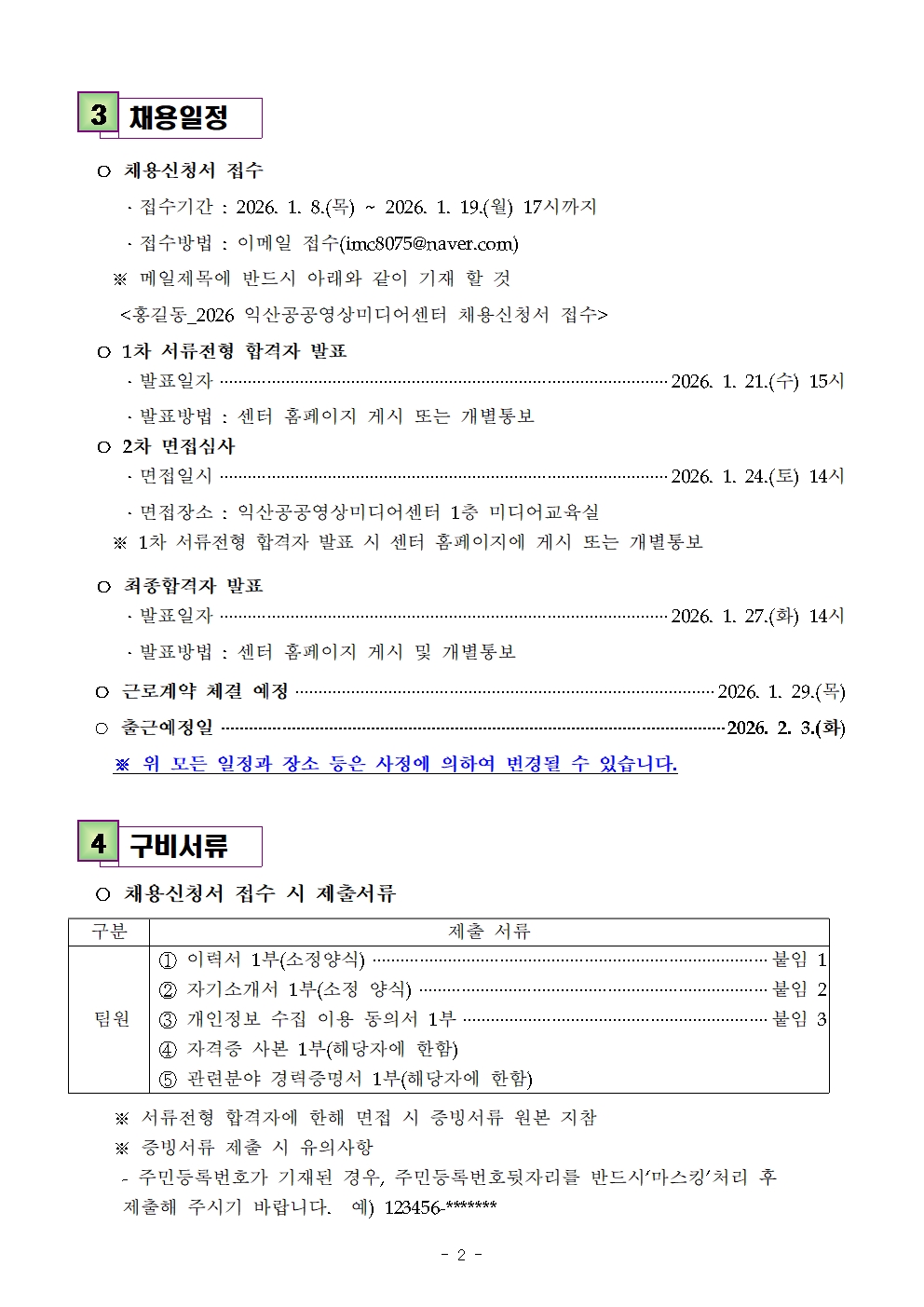 2026_익산공공영상미디어센터 직원 채용 공고문.hwp
