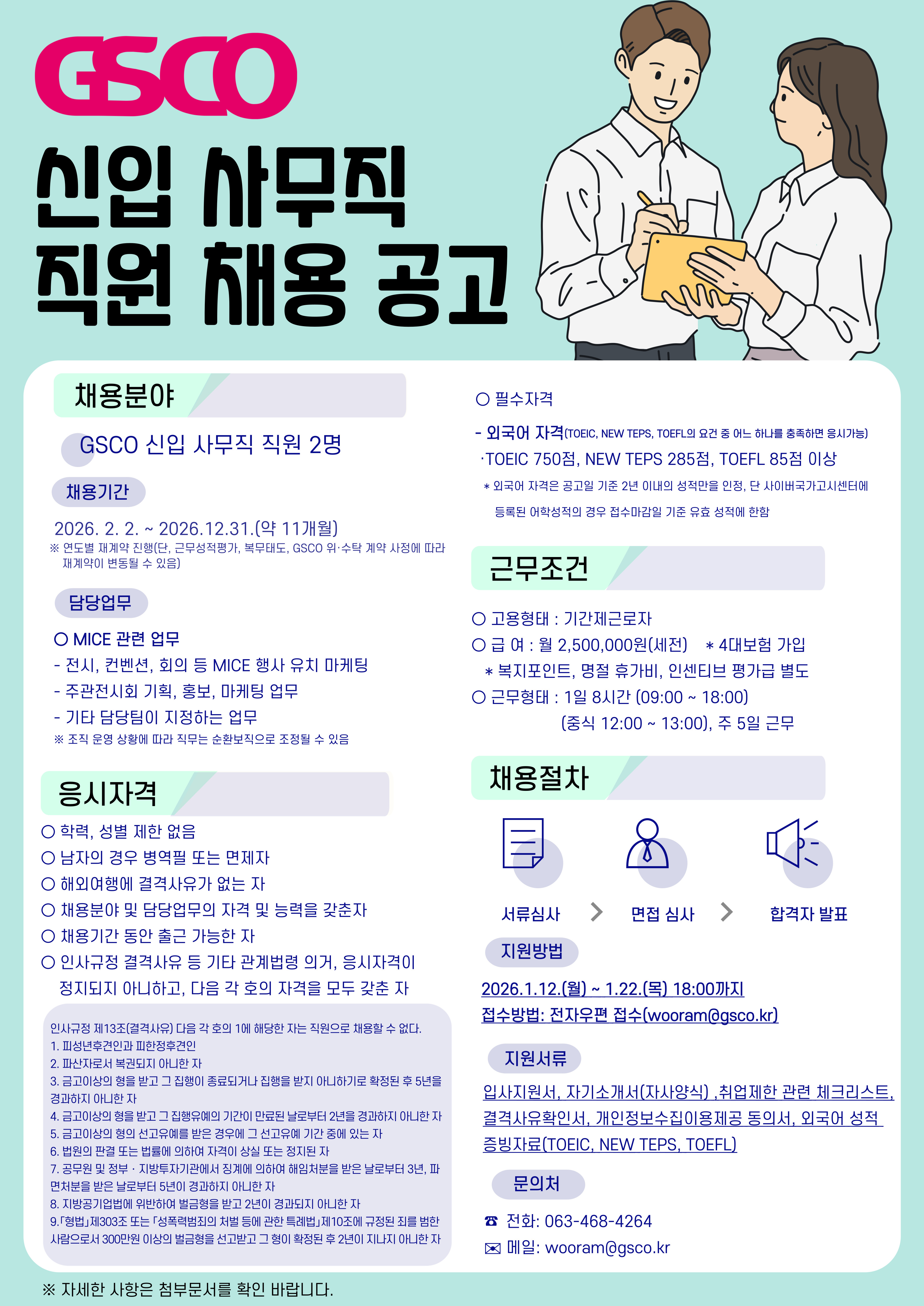 2026년 GSCO 신규직원 채용 공고문 및 입사지원서 등 소정양식.hwp