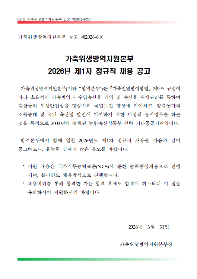 2026년 제1차 가축위생방역지원본부 채용 공고 1부.pdf