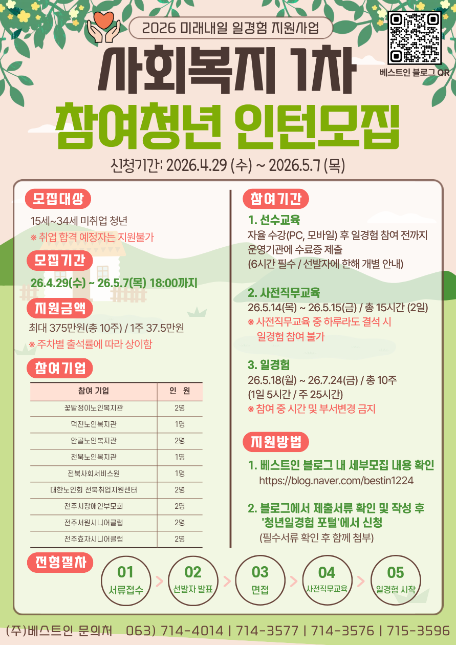 2026 미래내일 일경험 사회복지 1차 참여청년 인턴 모집 안내