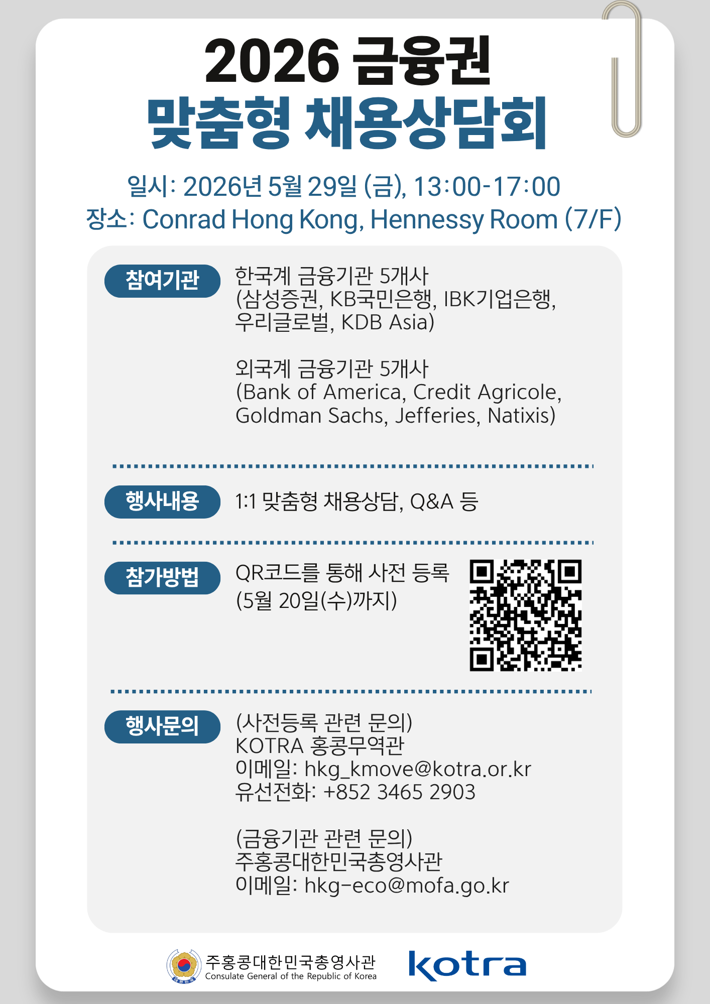 [KOTRA 홍콩무역관] 2026 금융권 맞춤형 채용상담회 안내