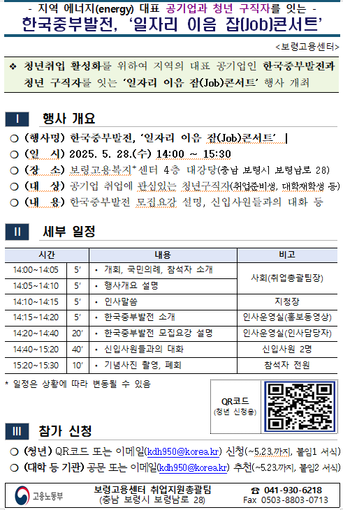 [2025년 한국중부발전, '일자리 이음 잡(Kob)콘서트' 안내]