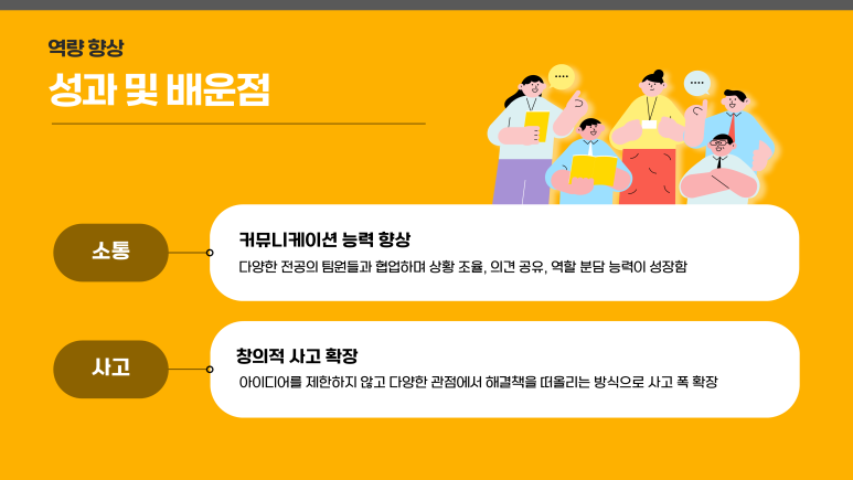 기억에 남는 활동, 활동 성과 및 배운 점, 활동 소감