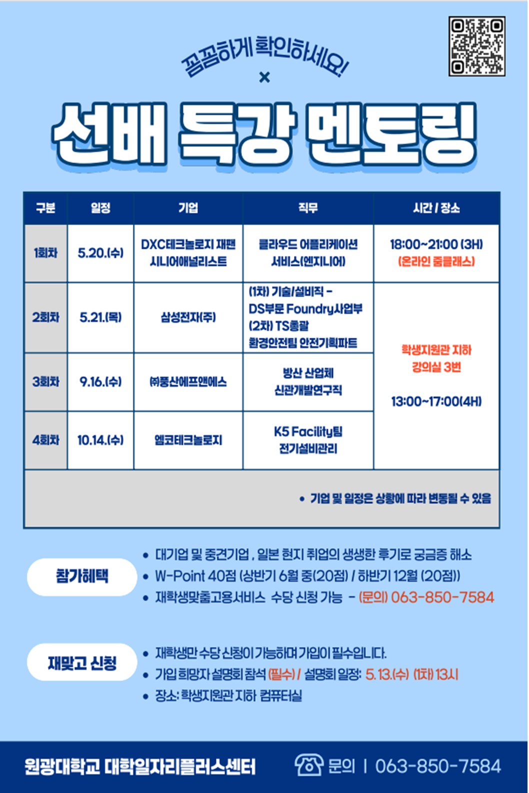 ■ 문의: 원광대학교 대학일자리플러스센터 담당자 김지연(063-850-7584)